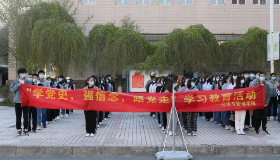 学生代表国际经济与贸易2020-1班梁鸿泽代表全院学生进行了发言。他引用列宁的“忘记历史就意味着背叛”指出无论我们走得多远,都不能忘记来时的路。身为新时代的青年团员,要不忘本,方能面向未来。他从“学党史”“强信念”“跟党走”三个方面分别给大家分享了学党史的目的和意义,表明当代大学生要筑牢“四个意识”、坚定“四个自信”、做到“两个维护”。