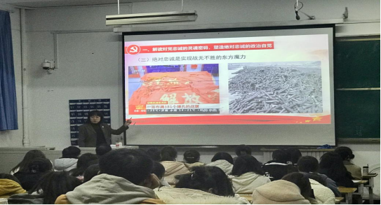 苗健副书记首先带领学生们学习了习近平总书记在庆祝建党一百年大会上的重要讲话,她指出绝对忠诚是永葆性质宗旨的精神命脉,绝对忠诚是赓续优良传统的红色火种,绝对忠诚是实现战无不胜的东方魔力。