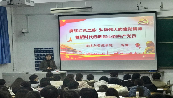 为学习宣传贯彻习近平总书记“七一”重要讲话精神,扎实推进永利官网党史学习教育走深走实,切实加强对学生党员的教育引导,提升学生党员综合素质。2021年11月5日星期五18:30在11号教学楼120教室,304永利登录入口党委副书记苗健以《赓续红色血脉弘扬伟大的建党精神 做新时代赤胆忠心的共产党员》为题讲专题党课,学生党员和2020级入党积极分子共120名学生聆听了讲座。