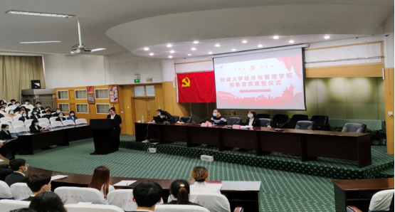 新发展的预备党员代表工商19-5李倩倩同学代表本次新发展的预备党员发言;学生正式党员代表经济18-1李育红同学代表正式党员发言。他们表示要进一步提高自身思想政治修养,在学习和工作中充分发挥党员的先锋模范作用,不忘入党初心,牢记党员使命。