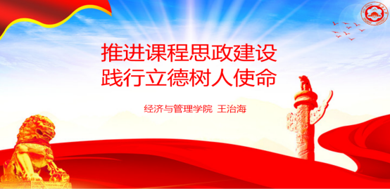 党课内容分为两个部分:一是全面深刻领会习近平总书记的重要讲话精神。王治海从教师的自我要求、青年学生的培养目标、学校的育人使命和思政课的本质及特点等方面,联系实际,对深入学习贯彻习近平总书记重要讲话精神的要点进行解读,尤其突出了大学教师的重要作用和大思政格局的构建;二是推进课程思政建设,践行立德树人使命。王治海提出我们的教育一定要聚焦总目标和 “双一流”建设,扎实推动高等教育高质量发展。他结合自己的工作实际情况,介绍了学院持续推进课程思政建设的实际情况和今后的设想,提出要把培育“时代新人”作为重要着力点,同向同行推进课程思政建设,充分发挥好课程体系的育人功能,大力推进“课程思政”制度化建设,以“四有好老师”、“四个引路人”和“四个相统一”的要求认真践行立德树人的历史使命。