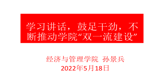 孙景兵以习近平总书记重要讲话精神为主题,结合学院实际,从打赢“三大攻坚战”,顺利完成学院2022年“双一流”工作任务,与会教师分享了学习的感想体会: