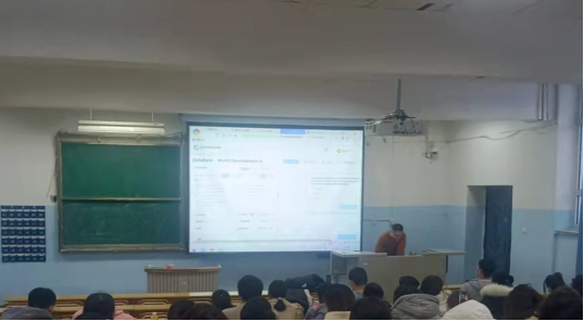 随后,马晓东老师介绍了世界发展数据库的搜索方法并对其含义及内容进行了概括总结,介绍了WDI所包含的六个主题并着重阐述了学生最感兴趣的经济方面。他又展示了1960年-2020年中国以及其他部分国家的经济总量走势图,并对其数据进行了巧妙的分析,指出了中国经济持续腾飞40年的“中国奇迹”,中美之间经济总量的差距已经逐年缩小。最后,马晓东老师介绍了如何利用世界银行数据库进行数据检索。