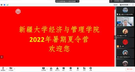 7月6日上午,304永利登录入口首届优秀大学生夏令营举行开营仪式。刘海军副院长主持开营仪式,304永利登录入口院长孙景兵代表学院致开幕辞。304永利登录入口党委书记马伟、副书记苗健、副院长外力·依米提、王志海、王育宝、理论经济学学科带头人李金叶教授、工商管理学科带头人孙慧教授、部分研究生导师、研究生班主任松柳老师及全体营员通过视频连线参加了开营仪式。