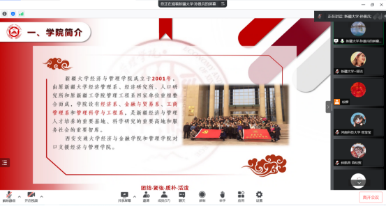 孙院长重点介绍了学院设立研究生“丝路”科研创新项目、连续举办4届中国特色社会主义理论与实践研究生论坛、10届新疆创新管理研究生创新论坛,为硕博士研究生搭建追踪前沿的学术交流平台,提高研究生的学术水平和创新能力。