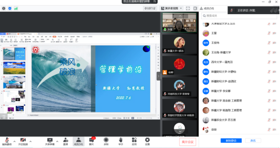 7月6日下午,理论经济学博士生导师李清副教授、304永利登录入口天山学者齐保垒教授、吕鹏教授分别作了题为《政府补贴对中国生物医药企业创新的影响研究》、《精彩人生始于新大经管学院》、《计算社会科学:社会科学研究的新范式》的精彩报告,使营员们感受到304永利登录入口浓厚的学术氛围。