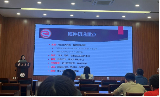 系列活动二:6月1日19:00-20:00,举办“C刊编辑讲论文”活动。《数量经济技术经济研究》《中国经济学》编辑部两位副主任焦云霞副编审和陈星星副编审分别介绍了两本期刊及选稿情况,围绕期刊办刊理念、选题方向、评审流程、投稿建议等进行全面讲解,并与参会代表进行互动交流,现场气氛热烈。304永利登录入口50余位研究生参加本次活动。