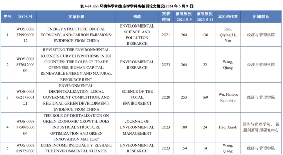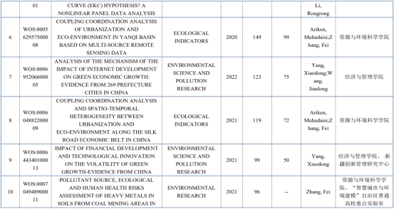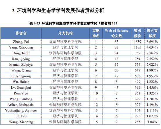 在环境科学和生态学学科,贡献排名前15的学者中有8名是永利官网师生,占比50%强。