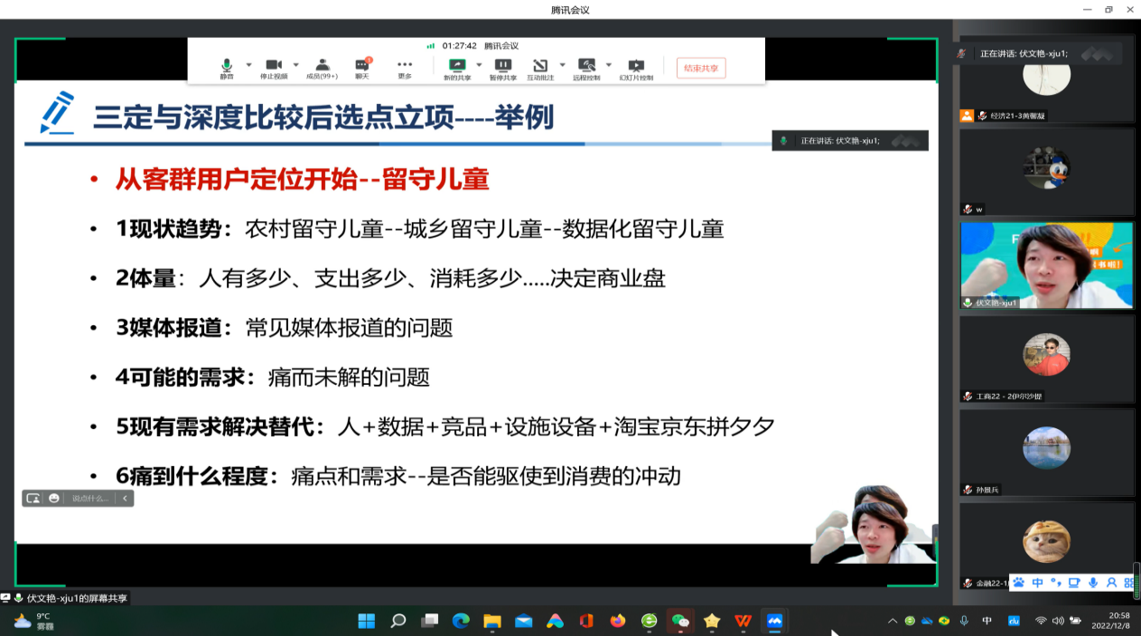 距离第十三届全国大学生电子商务“创新、创意及创业”挑战赛开始越来越近,同学们已经进入准备阶段了。俗话说:“不打无把握之仗。”为了帮助同学们更加全面的了解比赛信息,掌握比赛准备过程中需要重点关注的内容,鼓励同学们积极参加各类创新创业大赛,2022年12月8日20:00,304永利登录入口邀请304永利登录入口党委学生工作部副部长伏文艳副教授举办了“全国大学生电子商务“创新、创意与创业”挑战赛项目选点立项与团队建构”为主题的专题讲座,304永利登录入口院长孙景兵老师、就业辅导员热娜老师全程参与,共有210余名学生听取了讲座。