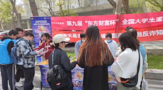 为落实中国证券监督管理委员与中华人民共和国教育部联合发布的《关于加强证券期货知识普及教育的合作备忘录》部署,做好金融理财知识普及工作,适应新形势下金融市场发展对人才的需求,同时普及典型金融诈骗案例,增强在校学生的金融反诈意识,防止因被诈骗导致的心理失衡或情绪失控现象发生。2023年4月26日15:30,304永利登录入口投资与理财协会社团在红湖校区主干道(俞秀松路)设置“第九届‘东方财富杯’全国大学生金融挑战赛和‘天天基金杯’第二届全国高校金融反诈知识竞赛”宣传点位。通过发放宣传手册和东方财富信息股份有限公司提供的精美小礼品,吸引了很多同学了解2场竞赛的赛程和形式,有效扩大赛事影响力,让更多同学主动加入到本次竞赛中。