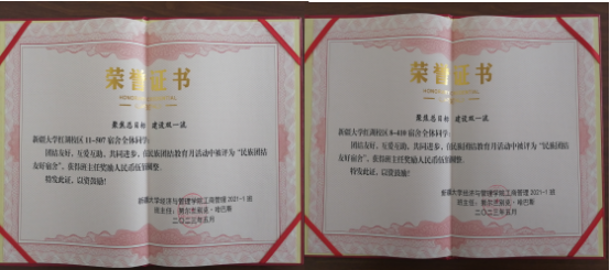 2023年5月31日下午团课时间,班主任努尔兰别克·哈巴斯老师隆重表彰工商21-1班11-507和8-410宿舍,在本次的民族团结教育月中被授予班级民族团结先进宿舍。努尔兰别克老师奖励每个民族团结友好宿舍500元,共人民币1000(壹仟)元,这是他对同学们在民族团结、生活和社会活动中所展现出的优秀品质和成绩的肯定和鼓励。他鼓励同学们,作为新时代大学生要不断巩固和发展各民族大团结的大好局面,向先进宿舍学习,争做民族团结的模范。