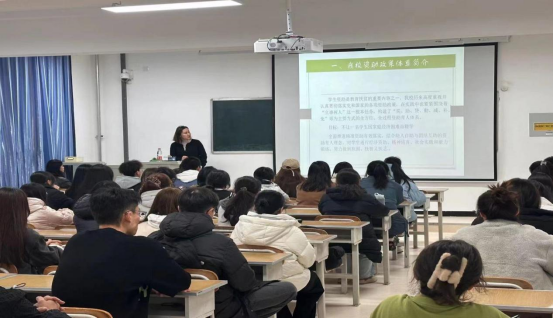 会议简述了我校资助政策体系,讲述了我校历来高度重视并认真贯彻落实党和国家的各项资助政策,在实践中也紧紧围绕着“立德树人”这一根本任务,构建了“奖、助、贷、勤、减、补、免”等为主要方式的全方位、全过程资助育人体系,全面推进精准资助有效落实,结合助人自助与团结互助的资助育人理念,对学生进行经济资助、精神培育、社会实践和能力锻炼,努力做到扶困、扶智又扶志。