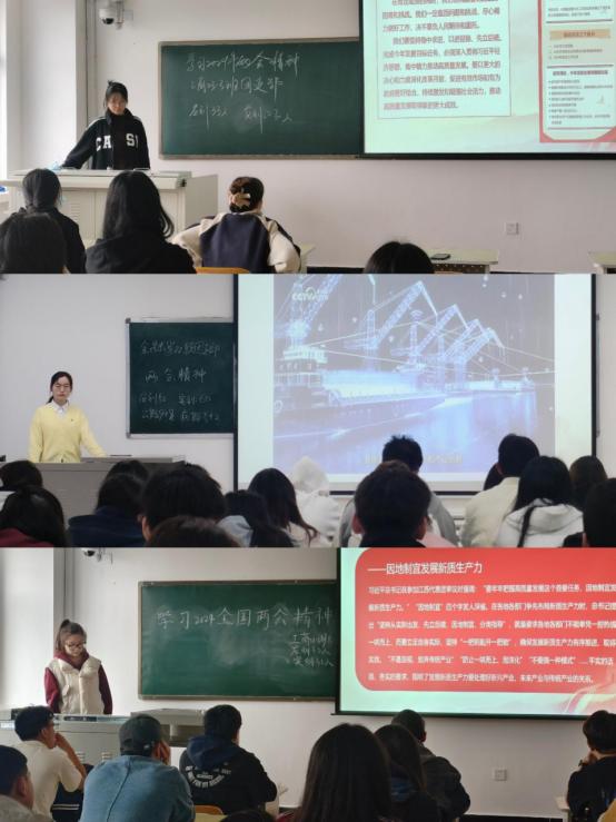 紧接着,团支书带领同学们重点学习了习近平总书记在全国两会上的重要讲话精神。总书记的讲话深刻阐述了新时代中国共产党的历史使命和责任担当,为同学们指明了前进的方向。同学们反响热烈并深受启发,更加坚定了对党的信仰和对社会主义的信念。