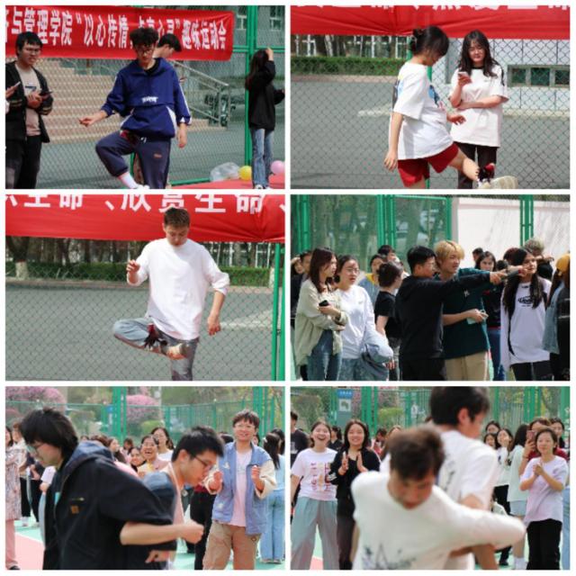 14:30,各部门工作人员率先抵达活动场地,进行活动现场的布置以及做好其他准备工作以确保趣味赛的正常开展。15:30,由主持人经济23-2胡婧予、经济23-2陈丽鑫为同学们公布参赛人员及分组情况、讲解比赛规则,在主持人的宣布下,本次趣味赛——“呼啦圈过山车”、“原地转圈踢毽子”、“心心相印”正式拉开序幕。