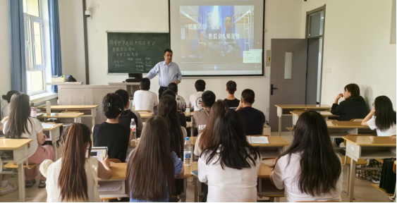 纪检部学生全面负责本次班会的考勤和记录工作,确保各班参会学生人数。各班同学提前进入教室,待各班班长严格考勤,班主任查明未参会学生去向及原因后,班会正式开始。在班会中,各班班主任及班长按照学院安排先给同学们播放新大拍摄的《民族团结一家亲胜似亲人师徒情》视频,再学习与铸牢中华民族共同体意识有关的文件内容与PPT内容,最后在班内进行了知识竞答和讨论。班主任带领同学们深入了解中国共产党新疆维吾尔自治区第十届委员会第十一次全体会议中对关于坚持以习近平新时代中国特色社会主义思想为指导、在新征程上有形有感有效铸牢中华民族共同体意识的决议,边宣读边强调道:“铸牢中华民族共同体意识与共建美好家园的重要性不言而喻。它们相辅相成,共同构成了我们中华民族发展的坚实基础。铸牢中华民族共同体意识、培养爱国情怀和共建美好家园是我们中华民族发展的重要任务。只有我们每个人都能够认识到它们的重要性,并付诸实践,我们才能够共同推动中华民族的伟大复兴。同学们认真聆听,期间班主任还举出我们生活中民族融合交流的例子,同学们热烈讨论,积极发言。班会后期,各班还进行了《铸牢中华民族共同体意识》知识竞答,通过竞赛的形式加深对民族团结知识和党的民族团结政策的了解。