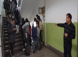 演练内容由火情报警、人员疏散及逃生以及灭火器操作等三个部分组成,每个部分内容安教学楼结构分5个楼层,东西两个出口安排专人负责有序进行。