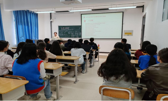 活动伊始,团支书带领大家齐唱《光荣啊,中国共青团》。随后,团支书为大家讲解本次活动的主要学习活动及任务。本次团日活动围绕习近平新时代中国特色社会主义思想展开。通过在多媒体教室进行PPT展示,同学们积极地为班级朗读“两个结合”、“六个必须坚持”、“十个明确”、“十四个坚持”的主要内容,并结合自身实际,讨论交流学习心得体会。