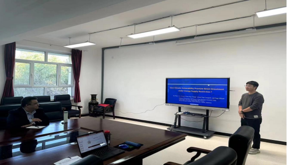张森老师的报告以“Does climate vulnerability promote green investment under energy supply restriction? ”为题,从能源供应限制的视角出发,实证考察了气候脆弱性对国家层面绿色投资的影响效果,探讨了适应性准备、经济发展水平、技术创新水平和能源供应限制的调节作用,并根据实证发现提出如何平衡气候保护和绿色投资之间关系的政策建议。