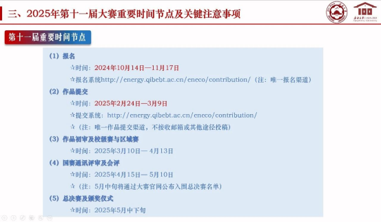第九届、第十届、第十一届大赛新疆赛区联系人周建力副教授介绍了全国能源经济学术创意大赛基本情况和2024年第十届大赛新疆赛区组织参与情况及获奖情况,并详细讲解了2025年第十一届大赛重要时间节点及关键注意事项。