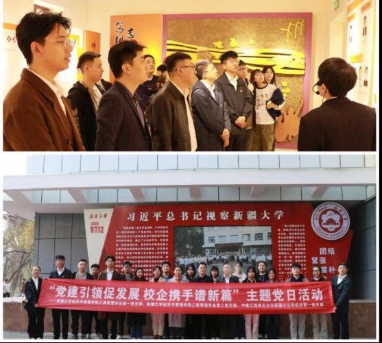 中建三局西北公司新疆分公司党委副书记、工会主席彭波带领中建三局西北公司新疆分公司机关第一党支部成员、304永利登录入口党委书记马伟带领304永利登录入口工商管理专业第一党支部、第二党支部全体正式党员参加了此次活动。