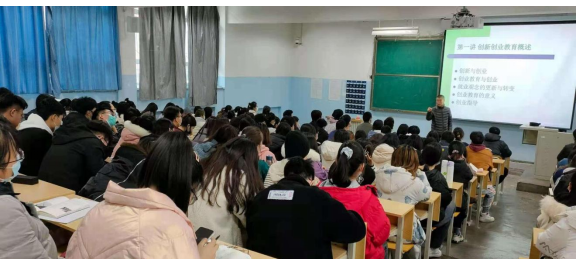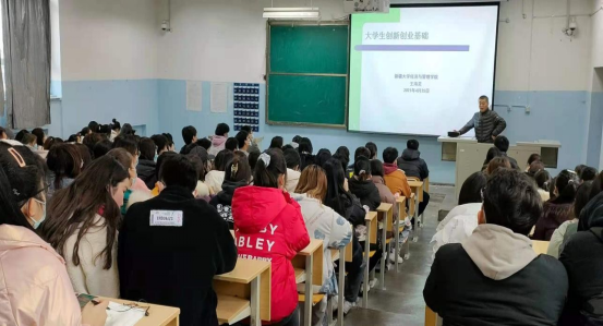 首先,王海灵简要概括了本科生可参与的A、B两类赛事,同时联系现实向大家分享指导大创赛的经验,向大家强调“ 创”字的灵魂是指从无到有的过程,要求同学们不光要注重想法,更要有方案和实施的方法及创意,付诸于行动,最终才能形成一个好的方案。